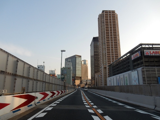 西名阪道は阪神高速の松原線と繋がっています。…右が難波付近