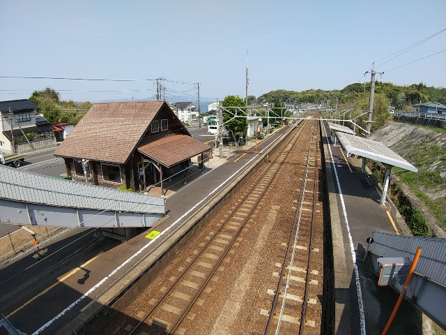 続いて来待駅です。2面2線の対向式ホームの駅なので、跨線橋で