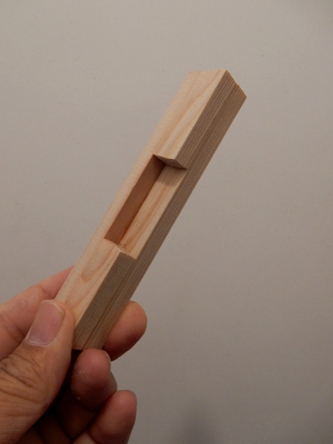 ので、角材を加工してコノような部品を作りました。