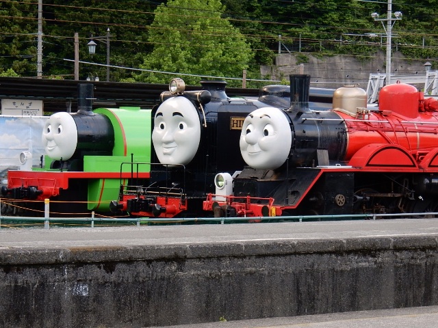 ともあれ千頭駅に近付くと、トーマスを待つスタイルの3両のキャラ