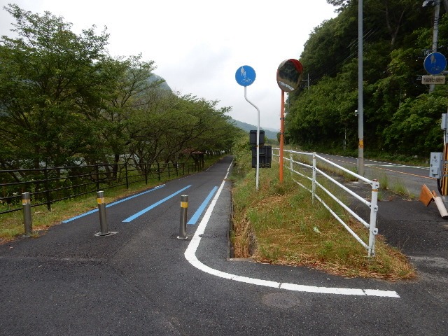 暫く行くと国道を渡って川沿いへ出る線形になってました。どんな形状