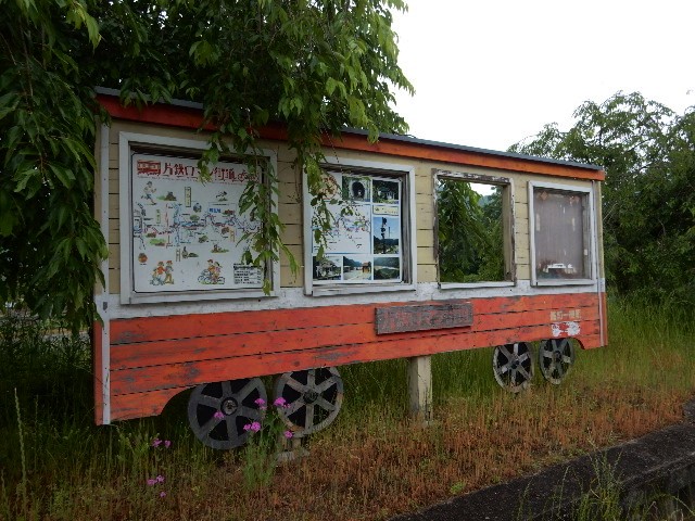 ココにある案内看板は、吉ヶ原駅前のと同じ気動車デザインの物です。