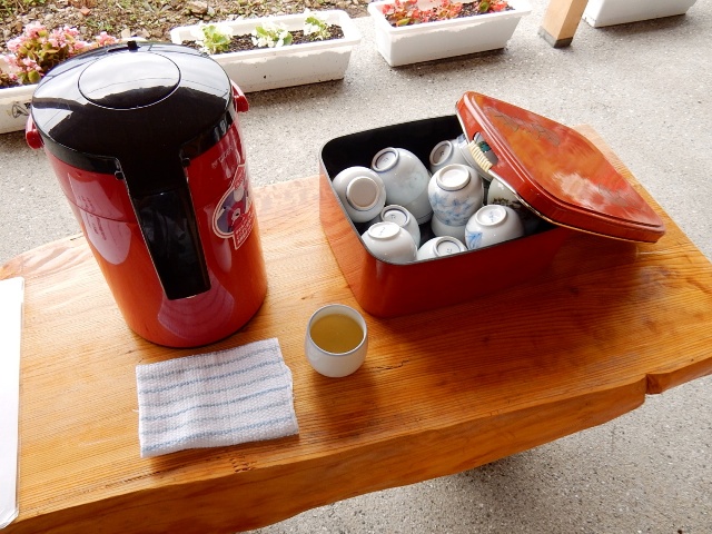 屋外のテラスに自由に頂けるお茶が用意されてるのと、100円だか