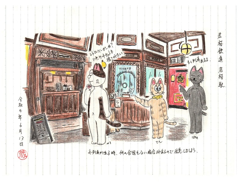 前回は駅構内を描きましたので、今回は駅舎内のカフェ付近を中心