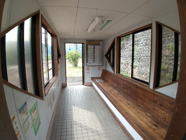 独特なスタイルの待合室があります。駅ノートはココにあるんですが、
