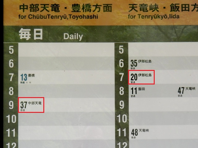 ココに着いたのが7:20の伊那松島行きです。そして9:37の中部天竜