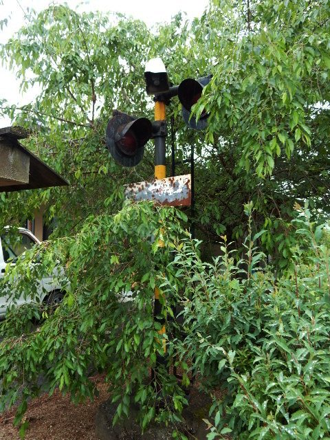 敷地は地域の公民館になっており、モニュメントとして踏切の警報機