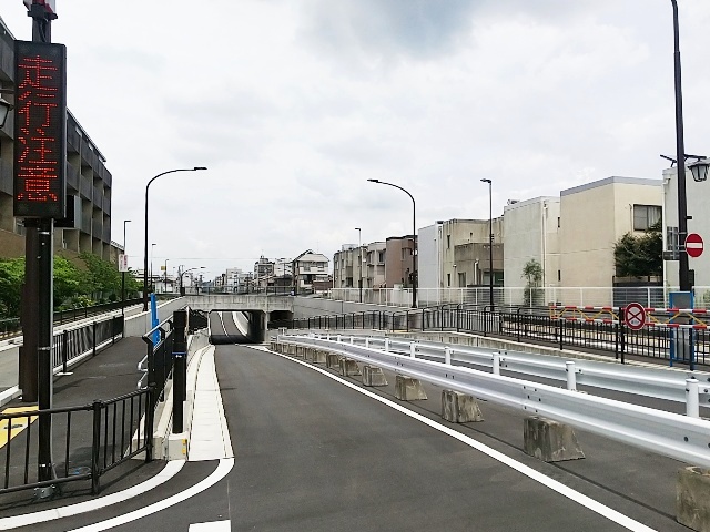 まずアンダーパスの前後にある東西方向の道路が、完成前は普通