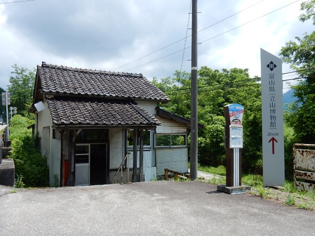 ホーム上の駅名標には「富山名物ますのすし」の広告がありますが