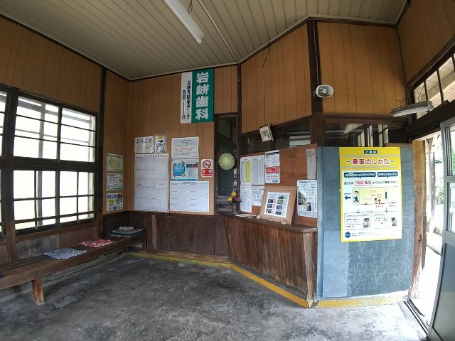 駅舎内の待合室も古びた感じですね。私鉄の駅と言うより中国地方