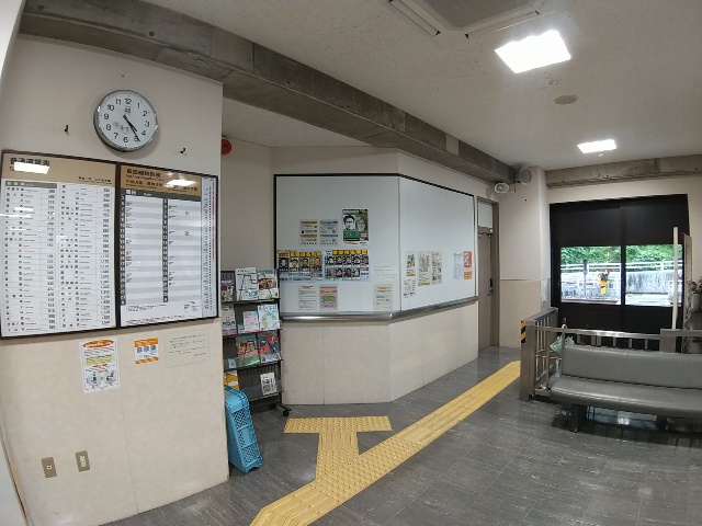 上の画像で左端に見えている黒い階段を上ると、駅のコンコースに