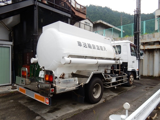 旅館の前には温泉のお湯を運ぶタンクローリーが駐まってました。