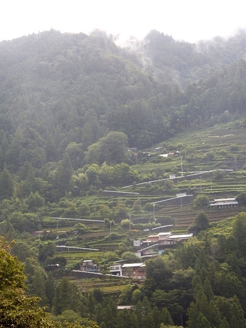 急な斜面に作られた茶畑の中に、スイッチバックみたいなウネウネ
