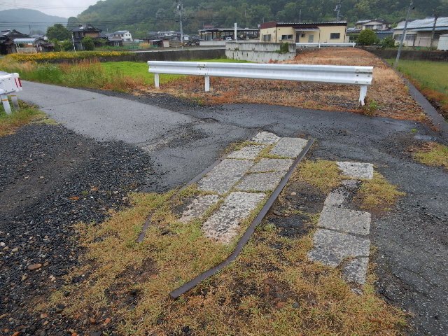 …そのまま進むと片上鉄道の廃線跡としては珍しい、踏切の遺構が