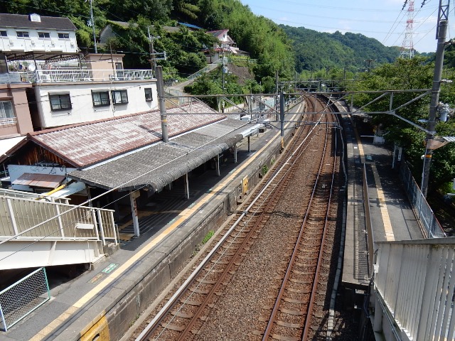 …線路がカーブしてる地点であり、春には大阪方面行きのホーム