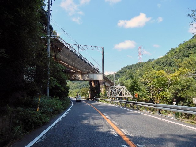大和川と大和路線の線路が絡み合った状態の所を走ります。
