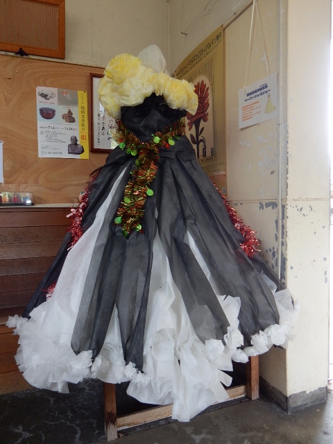 …飾ってあるドレスは地元の高校生がデザインした物だそうな。