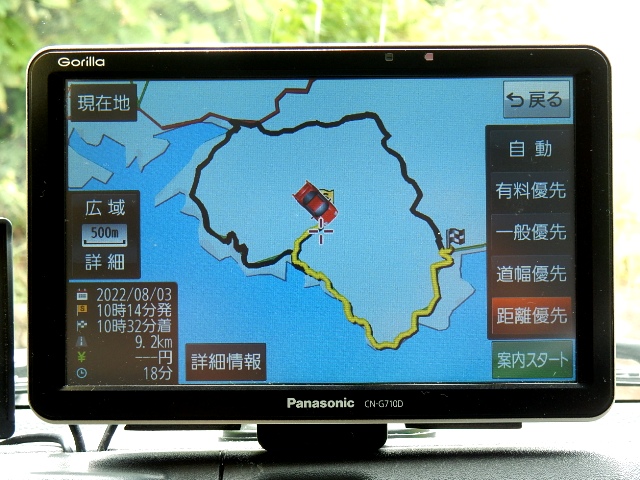 の設定では海岸を迂回して9kmあまりのようでした。