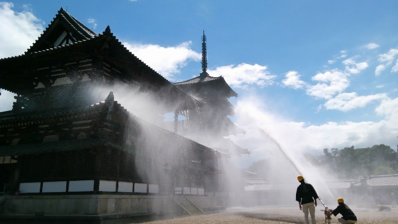 観光の仕事で法隆寺へ行ったら、丁度防火訓練をやってました。