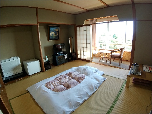 …8畳の和室で、サンルームからは日本海が見えます。…調べて
