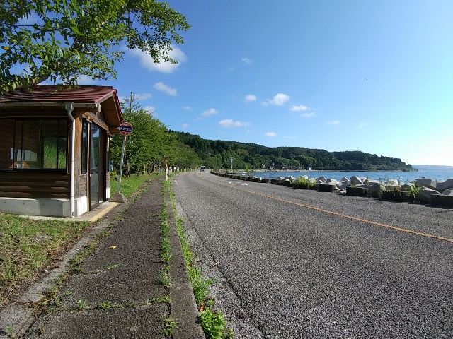 海岸線に沿った所に国道と廃線跡が並行して通ってる所です。