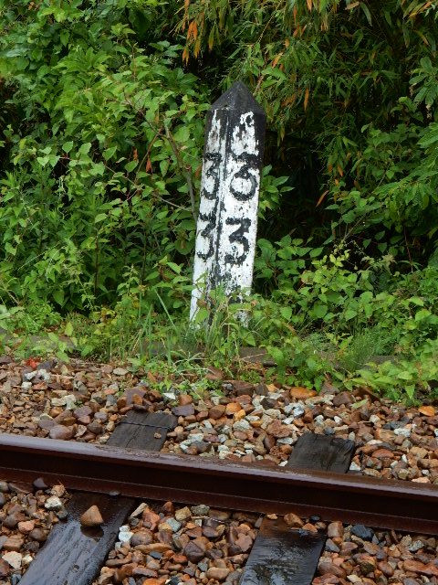 公開運転用の線路の途中に、33kmのキロポストがありました。