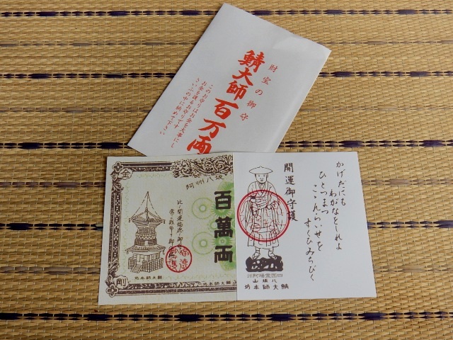ともあれ御朱印を貰ったら、おまけに「鯖大師百万両」と言う金運の