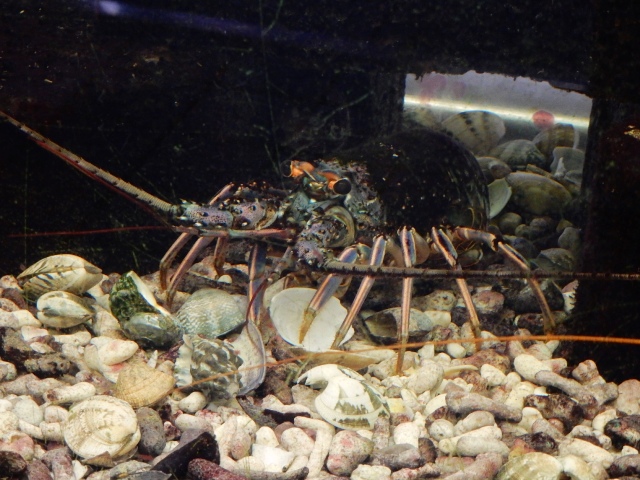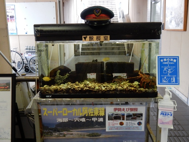 「伊勢海老駅長」が居ます。…しかしまぁ、水槽に入った伊勢海老