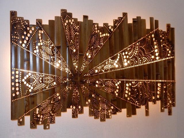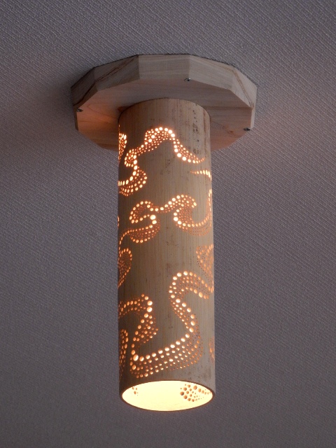 細かい模様で穴を開けた感じの照明器具が色々と並んでました。
