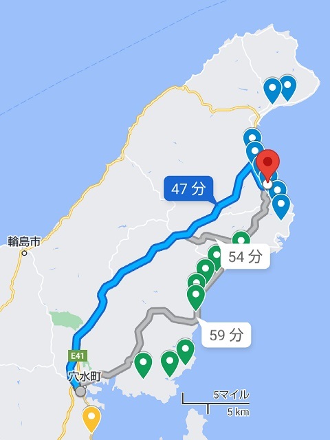 初日は「行くだけ」なんですが、穴水以遠は内陸部の農免道路など