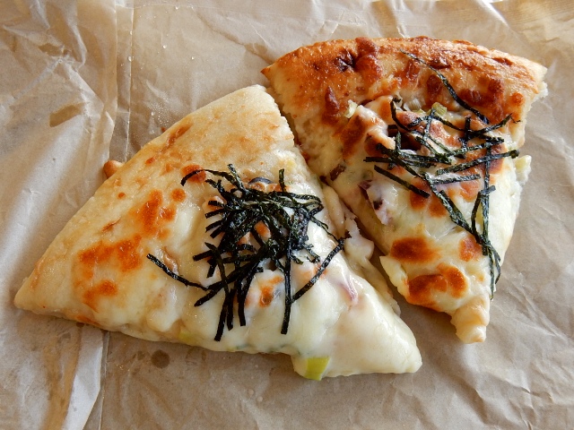 カフェで「イカ入りのピザ」を買ってみましょう。
