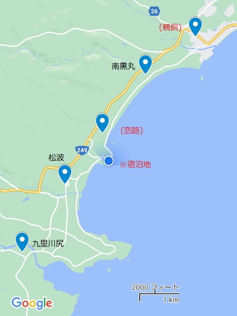 今回の予定は宿泊地から少し戻った九里川尻と松波、更に先へ