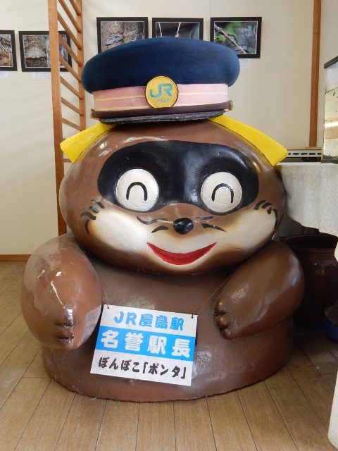 …今回も観光案内所の名誉駅長、ぽんぽこポンタに挨拶してから