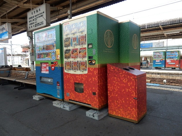 ホームにあった自販機は「四国まんなか千年ものがたり」仕様です。