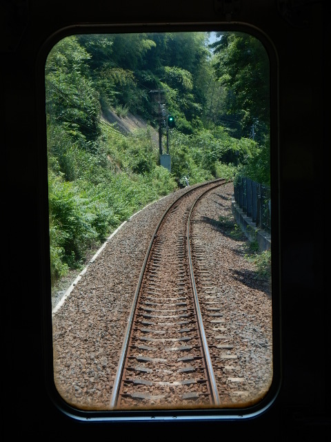 まず駅舎とホームを右手に見ながら勾配を下ります。…この時点では