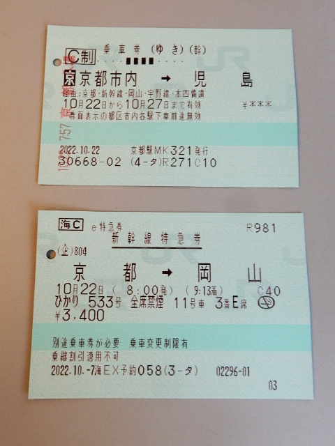 いつものように京都から新幹線で岡山に向かいます。…岡山と児島