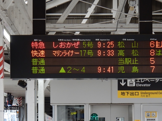 私が乗る「快速マリンライナー17号」の8分前に、特急「しおかぜ5号」