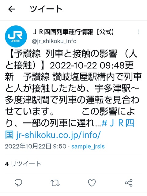 付近で事故が発生。「しおかぜ5号」は運転見合わせになってしまい