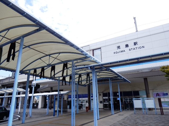 ドア付近の補助座席に座って約30分、児島駅に到着です。