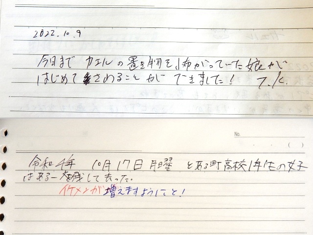 自転車絡みで既存の来訪者ノートと別に「サイクリングノート」なる