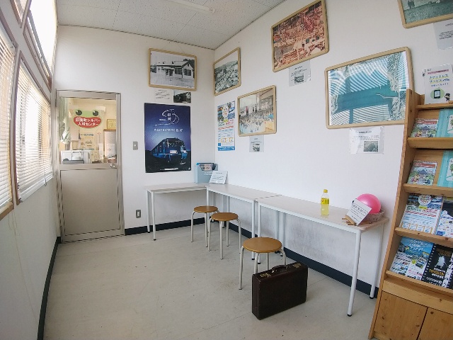 駅舎の一角に観光パンフレットなどを置いた別室があり、ココに椅子