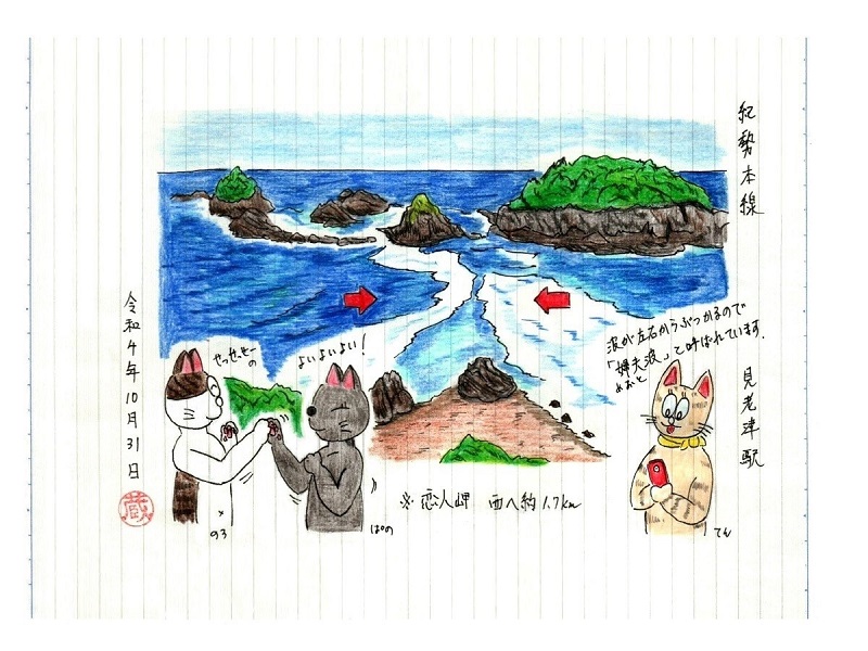 では今回の絵ですが、駅から西へ約1.7kmの所にある「恋人岬」と