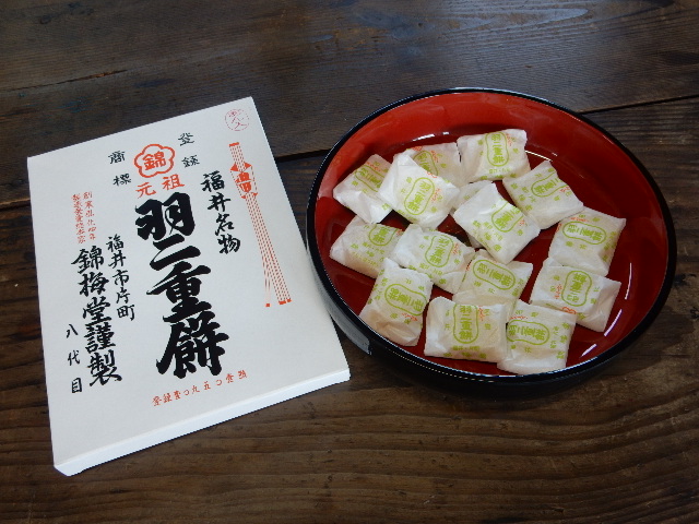 今回の茶菓子は、その福井で買ってきた羽二重餅です。