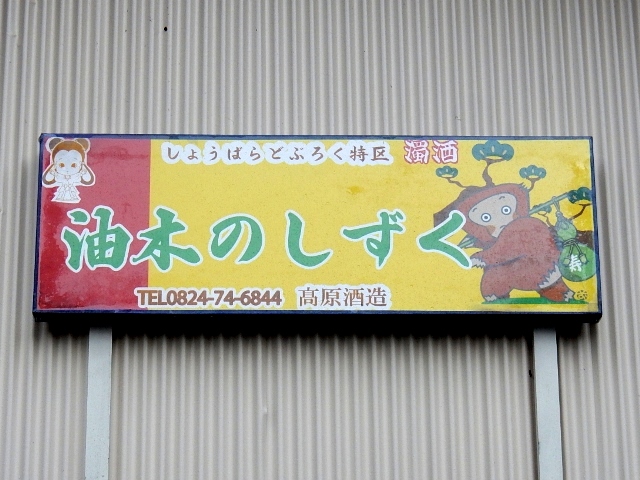 …「油木のしずく」と言う銘柄のようですね。看板に添えられてる