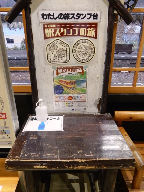 …過去にはスタンプ用の台を流用した所に駅ノートが設置されて