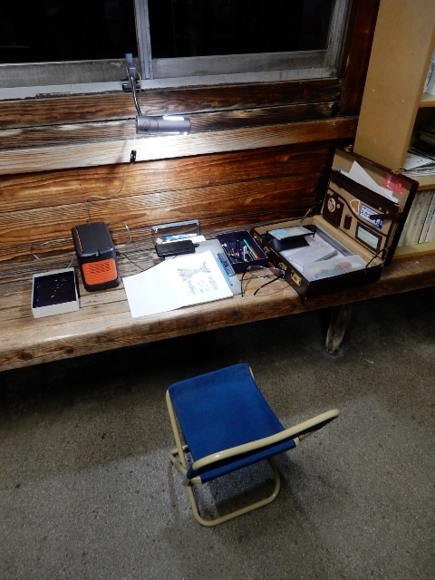 ので、車からバッテリーと電気スタンドを持ち出して照明を追加して