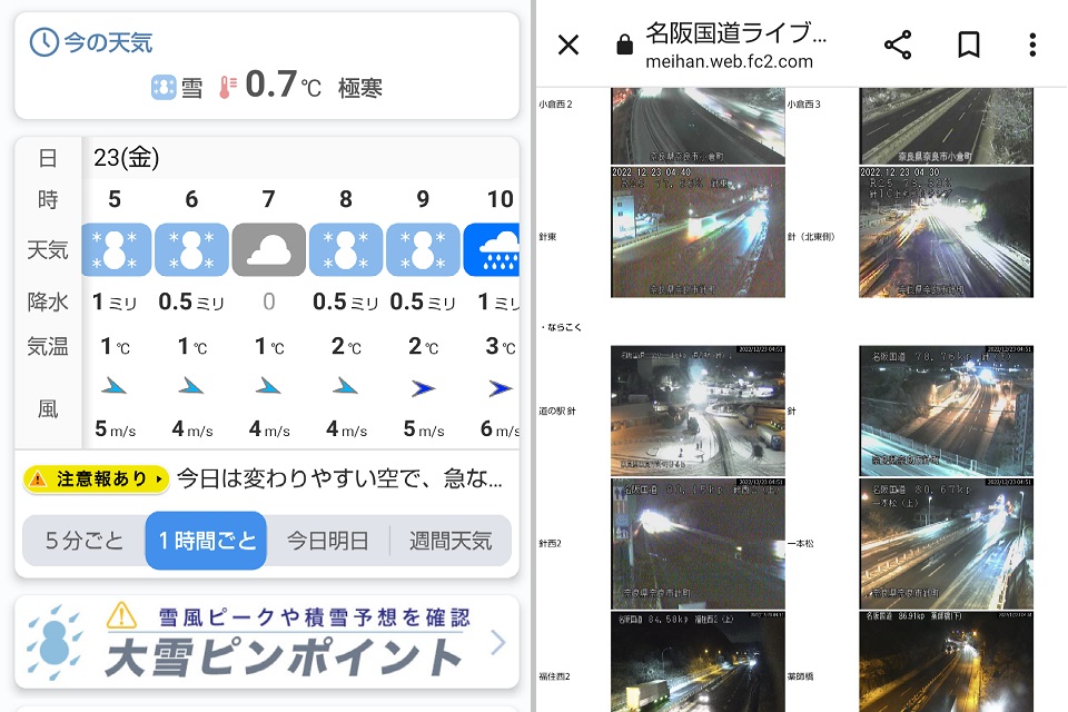 雪が降ったと言っても奈良県では、道路が通行止めになるような