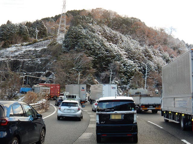 の登り坂で小規模な渋滞が発生していました。登坂車線まで一杯