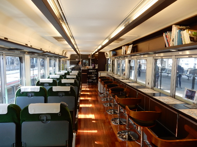 車内はカウンター席と回転クロストートの席が千鳥配置(号車で位置