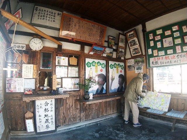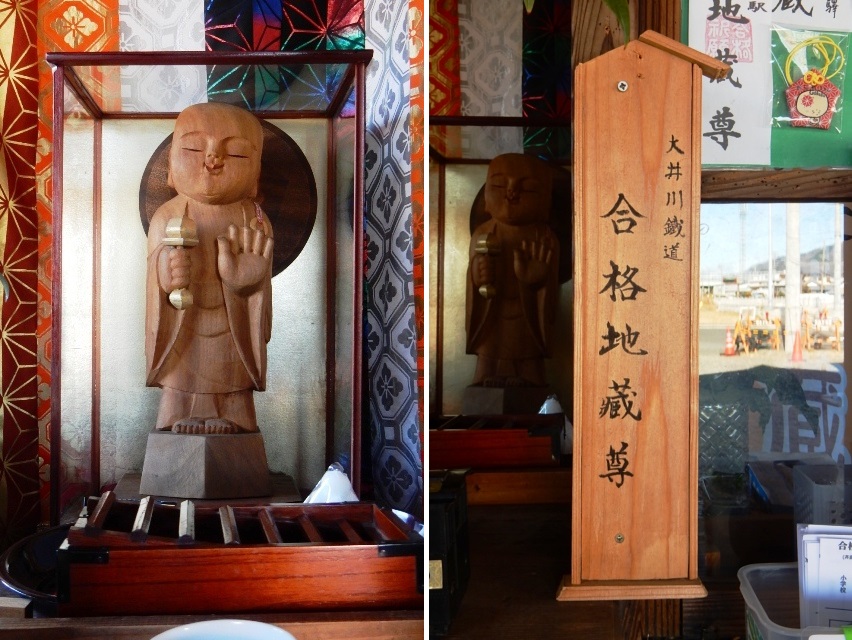 元の出札窓口から中を覗くと、合格地蔵尊なる木彫りの小さな仏像